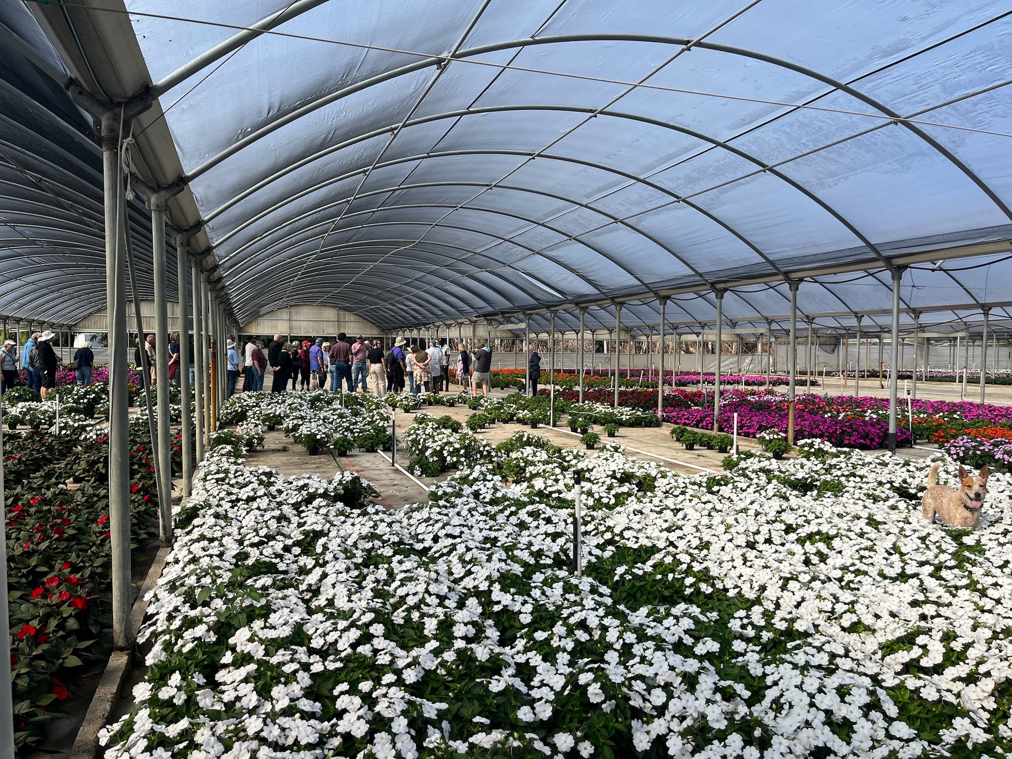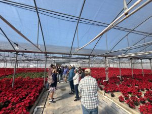 The tour stop itself was stunning. Rows of vibrant foliage, classic indoor plants, and ornamental varieties filled the greenhouses; many people on the tour mentioned feeling inspired to decorate their homes with new plants afterward. Beyond the beauty, we also got to see how much work is still happening behind the scenes to recover from last season’s storms. One of the greenhouse roofs was actively being rebuilt while we were there, a reminder that recovery in agriculture takes time, planning, and persistence.