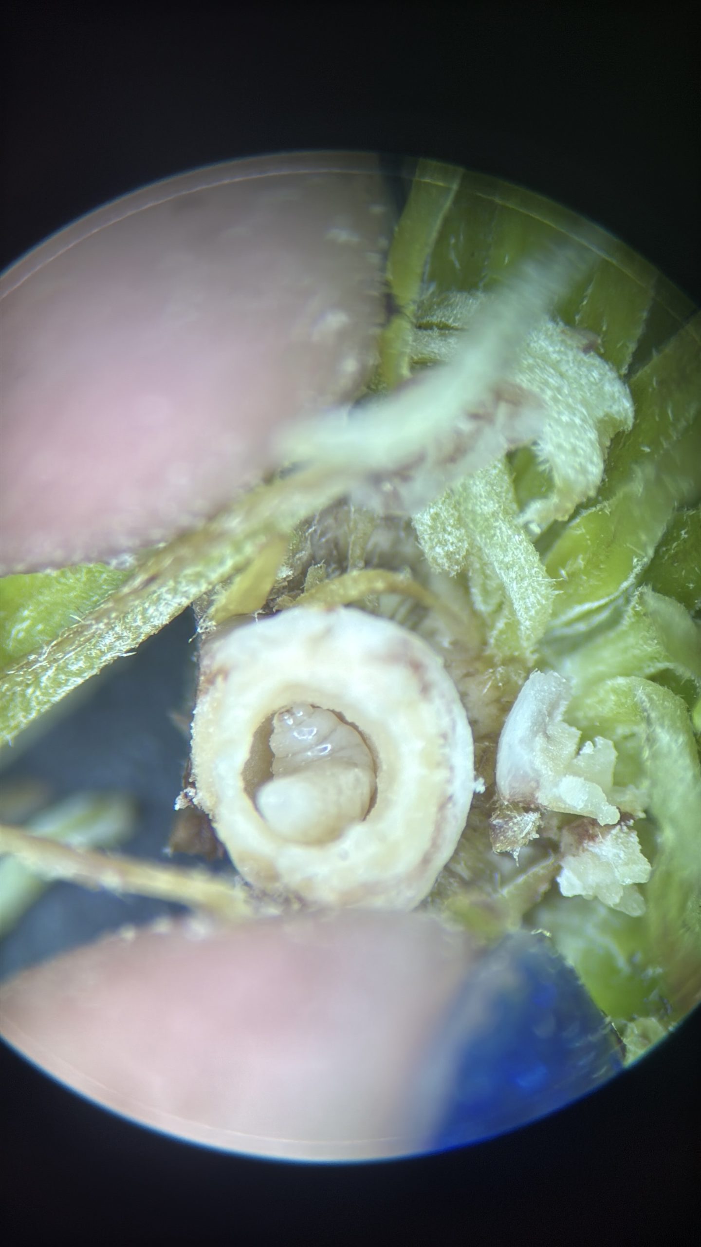 When a female wasp lays an egg on fresh, actively growing oak tissue, compounds from the wasp interact with the plant’s growth hormones. Instead of forming a normal leaf or bud, the plant redirects its development and creates a gall, essentially a tiny nursery that feeds and protects the larva. Inside, the larva has everything it needs: nutrition, shelter, and a stable micro-environment.