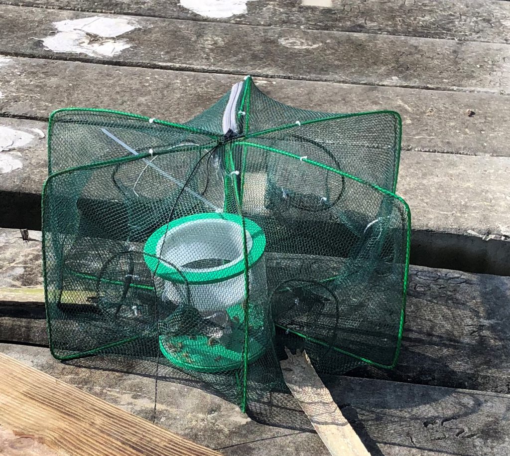 The mesh trap itself is made for catching baitfish. We bought it online, but they are commonly found in bait shops. For agama bait, we bought crickets from a local pet store which are similar to the insects that agama would prey upon in nature. Trapping began when I found an area with agama present. I always had luck in areas that had lots of trees nearby or concrete structures for them to hide in. For trap placement, I would put some crickets outside of the bait bucket, this is because agama are visual predators. Being a visual predator means that they sit and wait for prey to move in front of them before running it down to consume it.