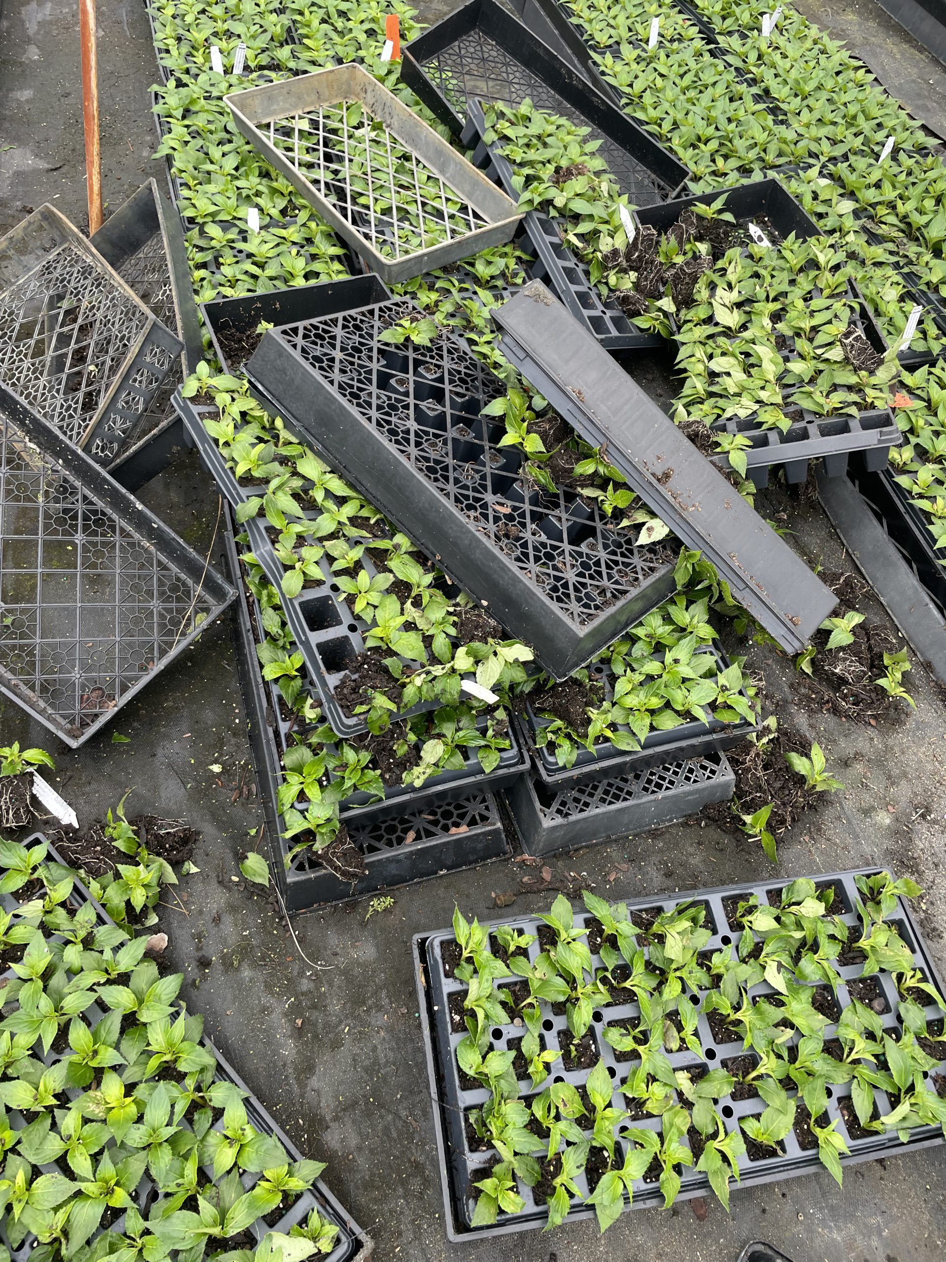 Trays of liner plants on a ground cloth caught by the winds were flipped and thrown onto nearby trays. Photo credit: Ian Pinder