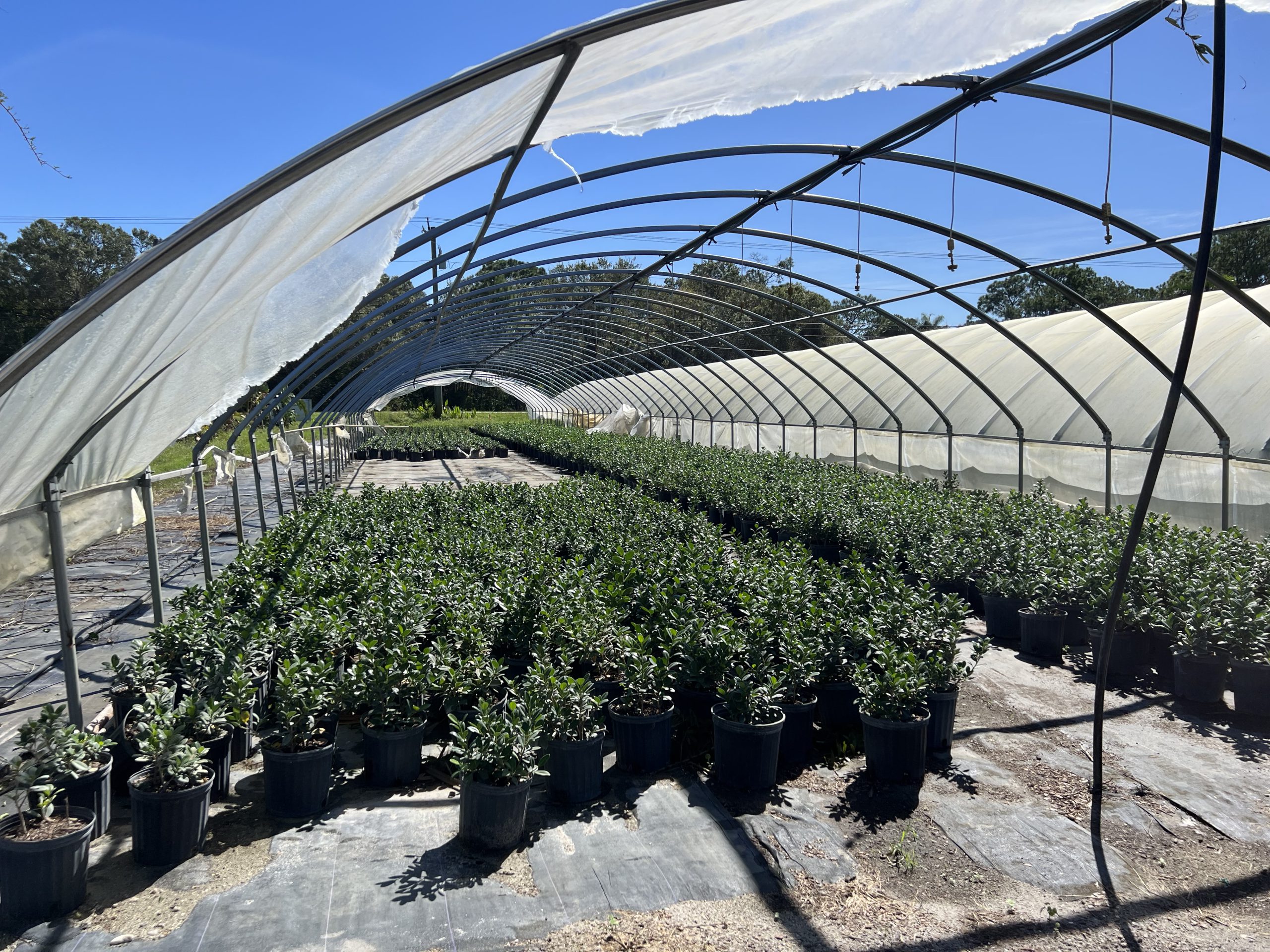 Many of our growers use protective structures like the one shown here. Most structures were undamaged or only minimally damaged by Hurricane Ian. Where there was some damage, winds tore plastic and shade cloth coverings and sometimes bent or broke the hardware/frames/supports.