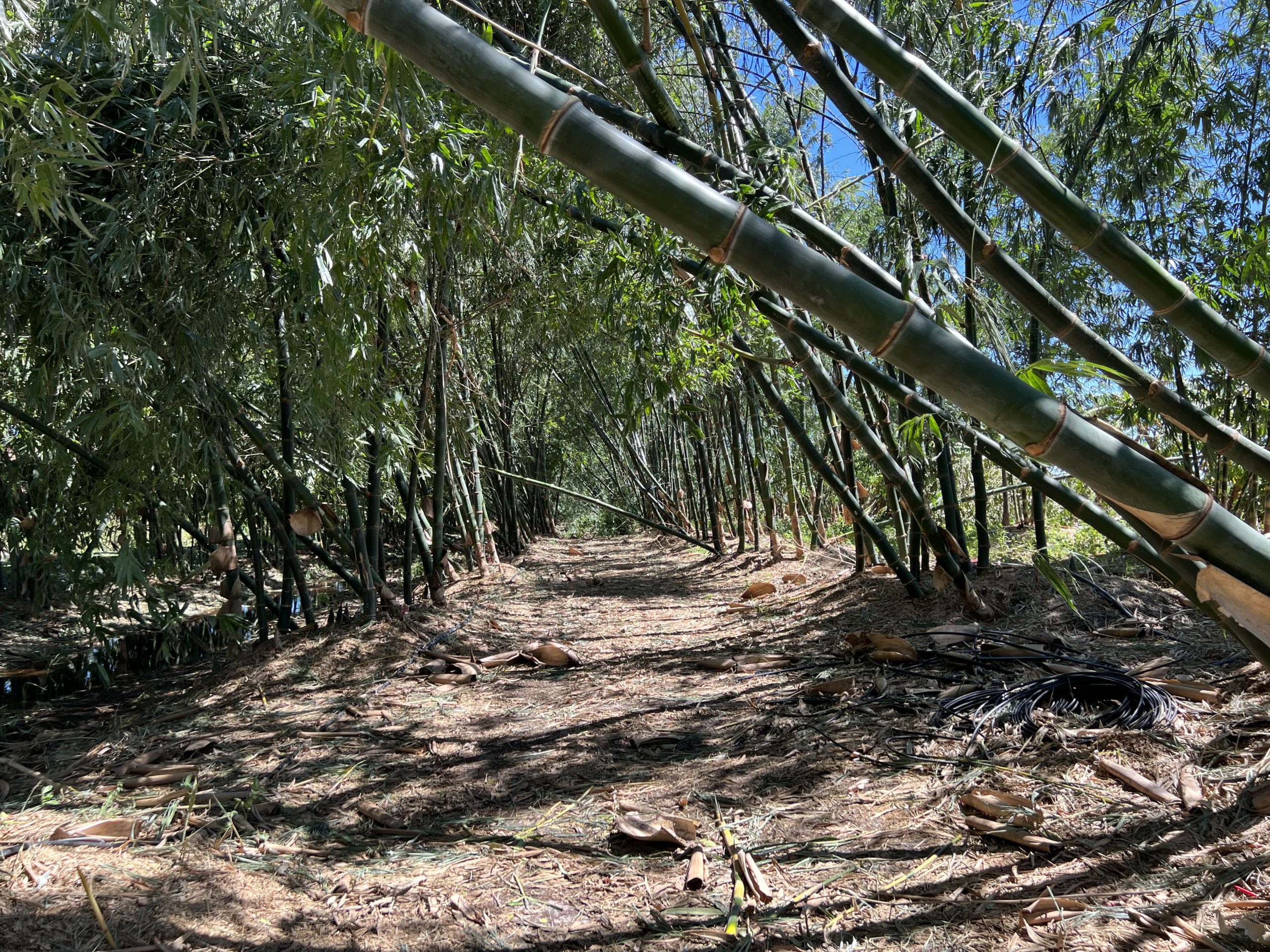 Growers of edible bamboo, an agroforestry crop, mound soil and compost over the base of each clump. Edible sprouts from rhizomes are harvested shortly after they emerge from the ground. The winds of Hurricane Ian resulted in the uprooting of some bamboo clumps as winds felled many overhead stalks.