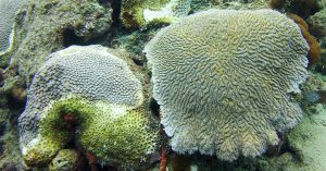 The first wave of the disease outbreak passed through the northernmost section of the reef tract from the St. Lucie inlet south through Biscayne National Park and the northern Florida Keys from 2014-late 2016. This ailment presents itself as a white band that appears to kill the living coral tissue, leaving behind bare skeleton that is quickly colonized by turf algae. Referred to as “white plague,” this disease could kill an entire coral colony in as little as two weeks. More than 20 species of corals (almost half of Florida’s reef-building species) have been affected by the white plague syndrome, including:
