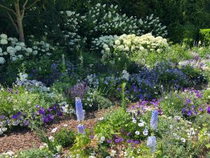 Cottage gardens often have large drifts of flowers with different textures, colors and fragrances, and can greet you as you enter with wandering butterflies and bees. They are personal gardens with little rules to follow. Winding paths seem to keep secrets until you discover them – like hidden benches in little nooks tucked away until the path presents it to you.