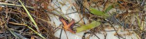 Tuesday morning, January 4, 2022. The sun rose, warming up the cool air. Sand crunched beneath my sneakers for my regular morning walk along Hobie Island Beach Park, the narrow beach that’s just north of the big Rickenbacker Bridge along Biscayne Bay. I encountered the usual suspects: seagrass washed ashore, helping to form the wrack line, debris and other detritus, a sea bean (score), and-a sea star. A juvenile sea star, maybe three inches large. “How unusual,” I thought, as never in all of my years walking along this beach, had I found a sea star. I picked it up and examined it, and placed it a few inches into the water, for it was dead. I shook my head and kept going.