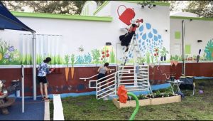 Photo: Yaredly adds vibrant details to a newly built vegetable bed at Lemon City Child Learning Center.