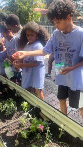 Another meaningful collaboration this summer was with Ms. Claudia’s Village Academy during their summer camp. During “Garden Week” at Ms. Claudia’s Village Academy, the Ready, Set, Grow! Program was implemented to enrich the students’ hands-on gardening experience. The children, aged 4 to 12, were divided into two groups for the two-hour garden reactivation.