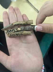 A Miami Bridge program participant upcycles garden sticks into plant labels. ↑