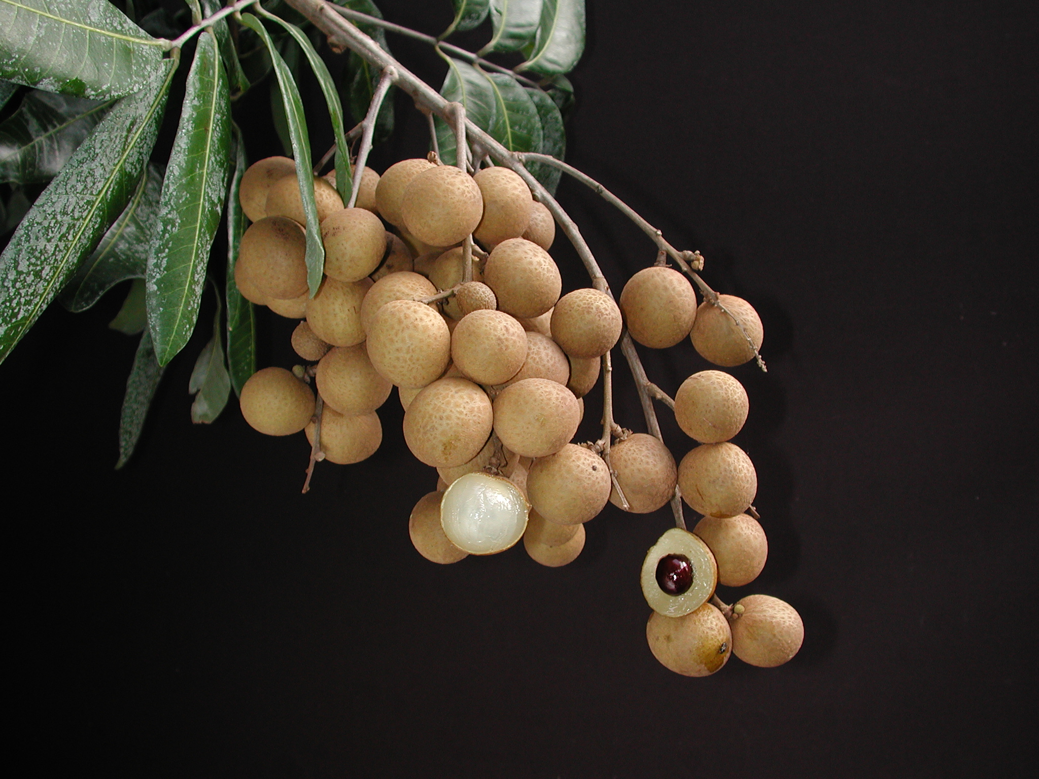Acerca de la fruta: La cáscara del longán es de color café opaco y tiene una pulpa dulce, terrosa, y texturizada, que rodea una sola semilla. La fruta se consume tanto fresca como enlatada.