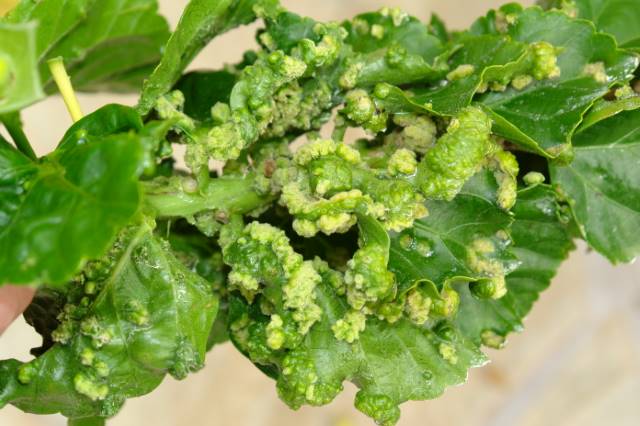 • Commonly affected ornamental hosts include hibiscus, privet, camellia, roses, lantana, ruellia, and podocarpus (witches’ broom).