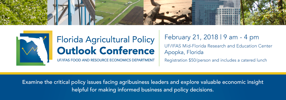Register now for the 3rd Annual Florida Agricultural Policy Outlook Conference on February 21, 2018 right here at the Mid-Florida Research and Education Center!