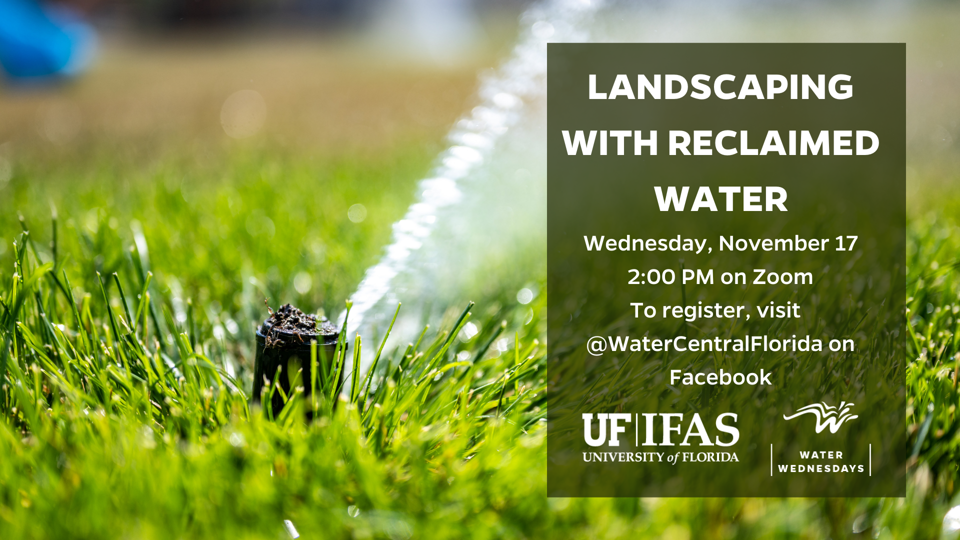 Catch Terra Freeman, Urban and Commercial Horticulture Extension Agent and Master Gardener Program Coordinator in UF/IFAS Extension St. Johns County, and Dr. Yilin Zhuang, Water Resources Regional Specialized Agent in UF/IFAS Central District talk about the benefits of using reclaimed water in your landscapes on November 17. Also all the tips how to properly use reclaimed water in your landscapes.