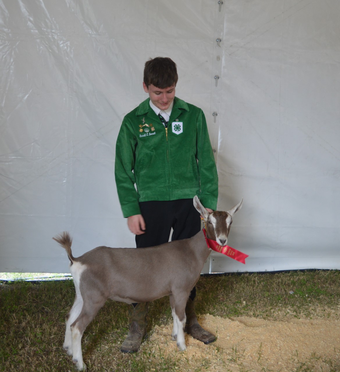 Garrett also participated in both the youth and open goat shows. In the Youth show he placed third in the junior AOP division with his goat “Ghirardelli” and fourth in the open show. In the Senior Nigerian class he placed tenth in the youth show and seventh in the open show with his dry doe “Nala”. He also received a red ribbon in the senior goat showmanship competition.