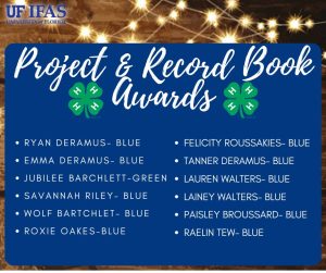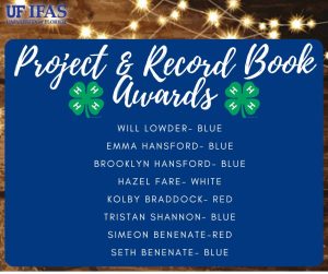 We had 22 youth receiving Project and Record Book Awards on subjects including photography, sheep, rabbits, swine, goats, horses, and poultry.