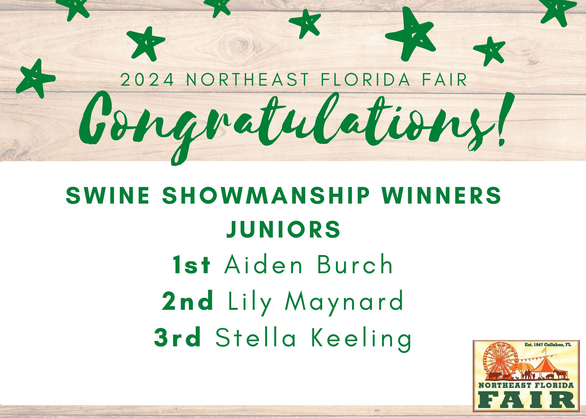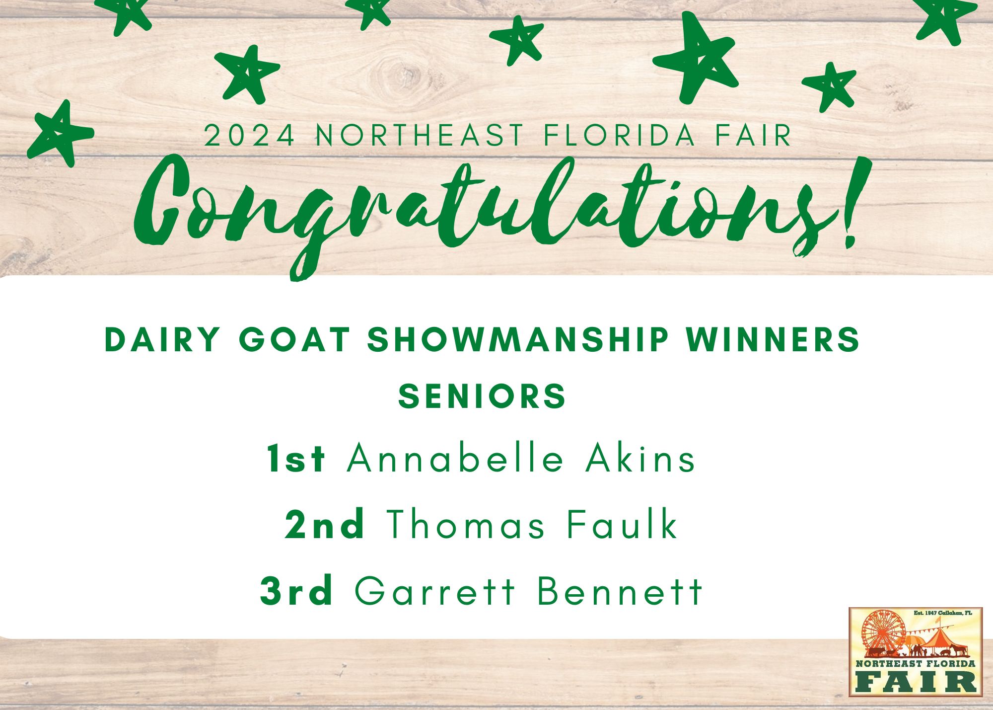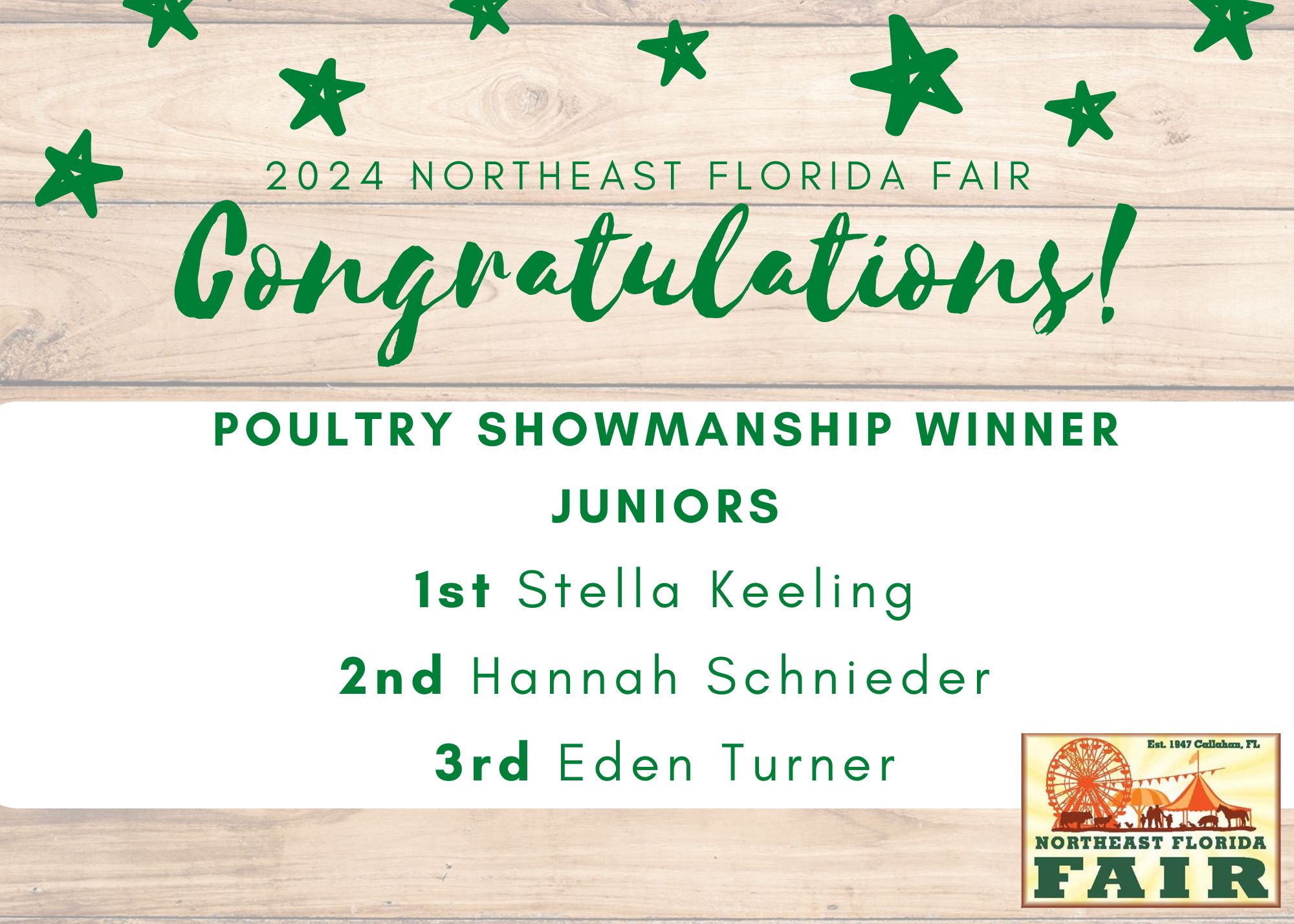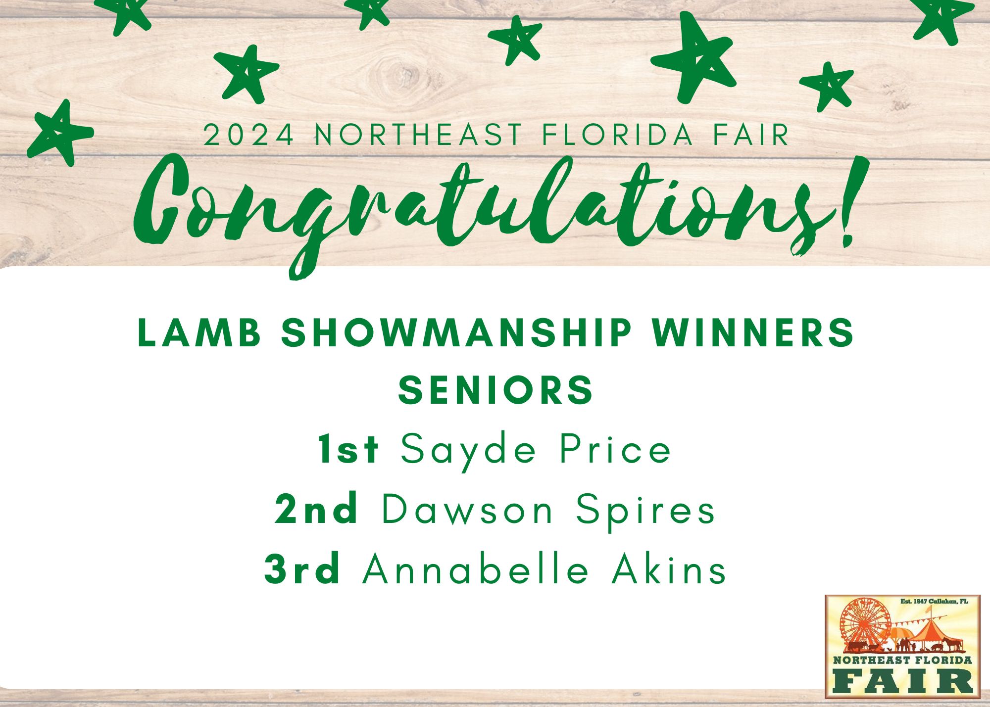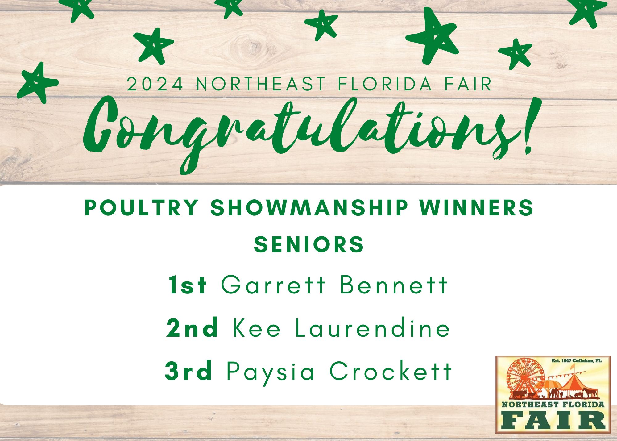 Congratulations to all of competitors, exhibitors, volunteers, and friends who participated in the 2024 Northeast Florida Fair!