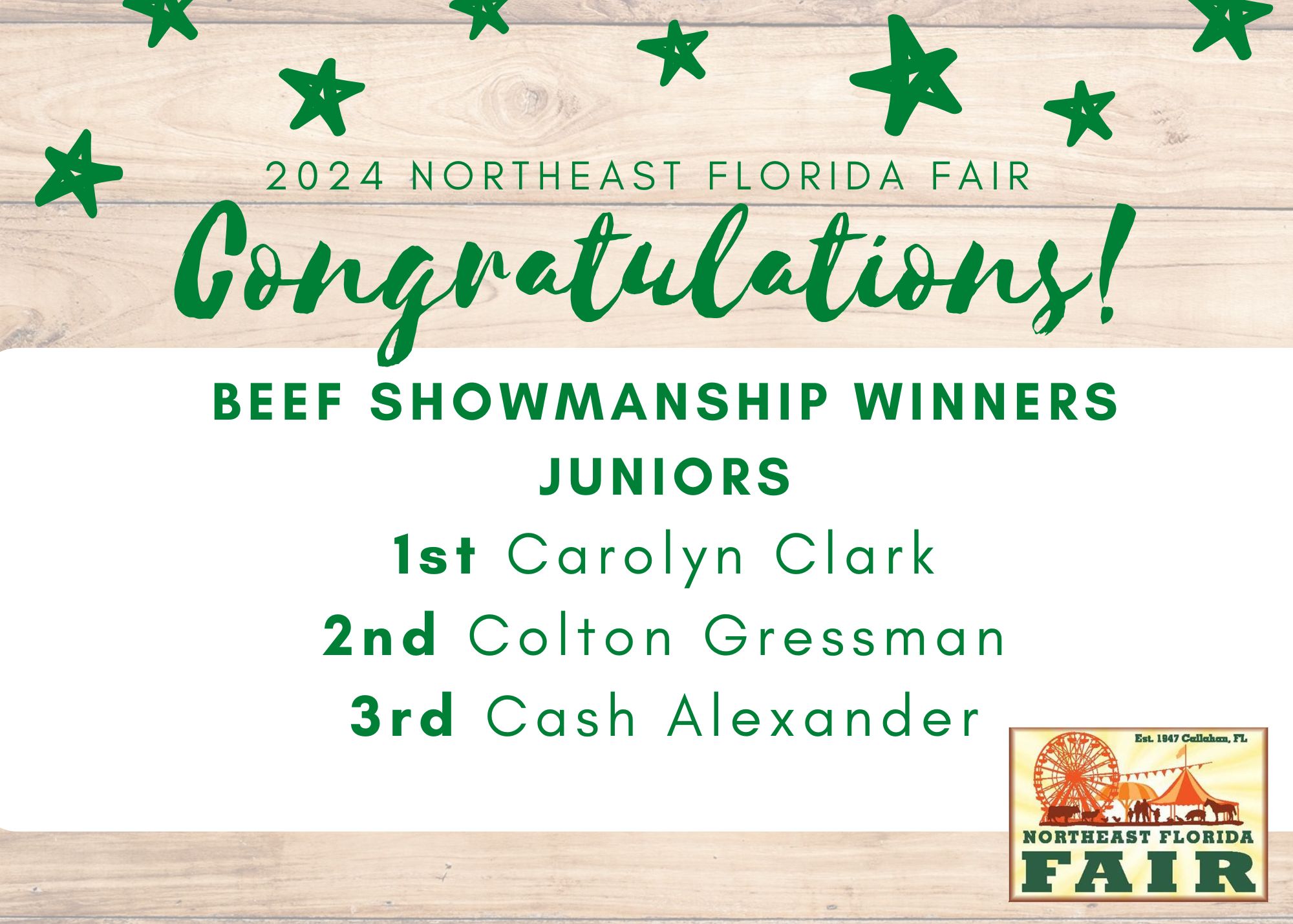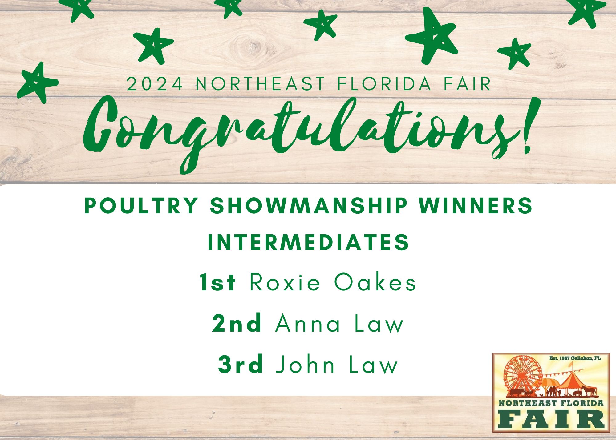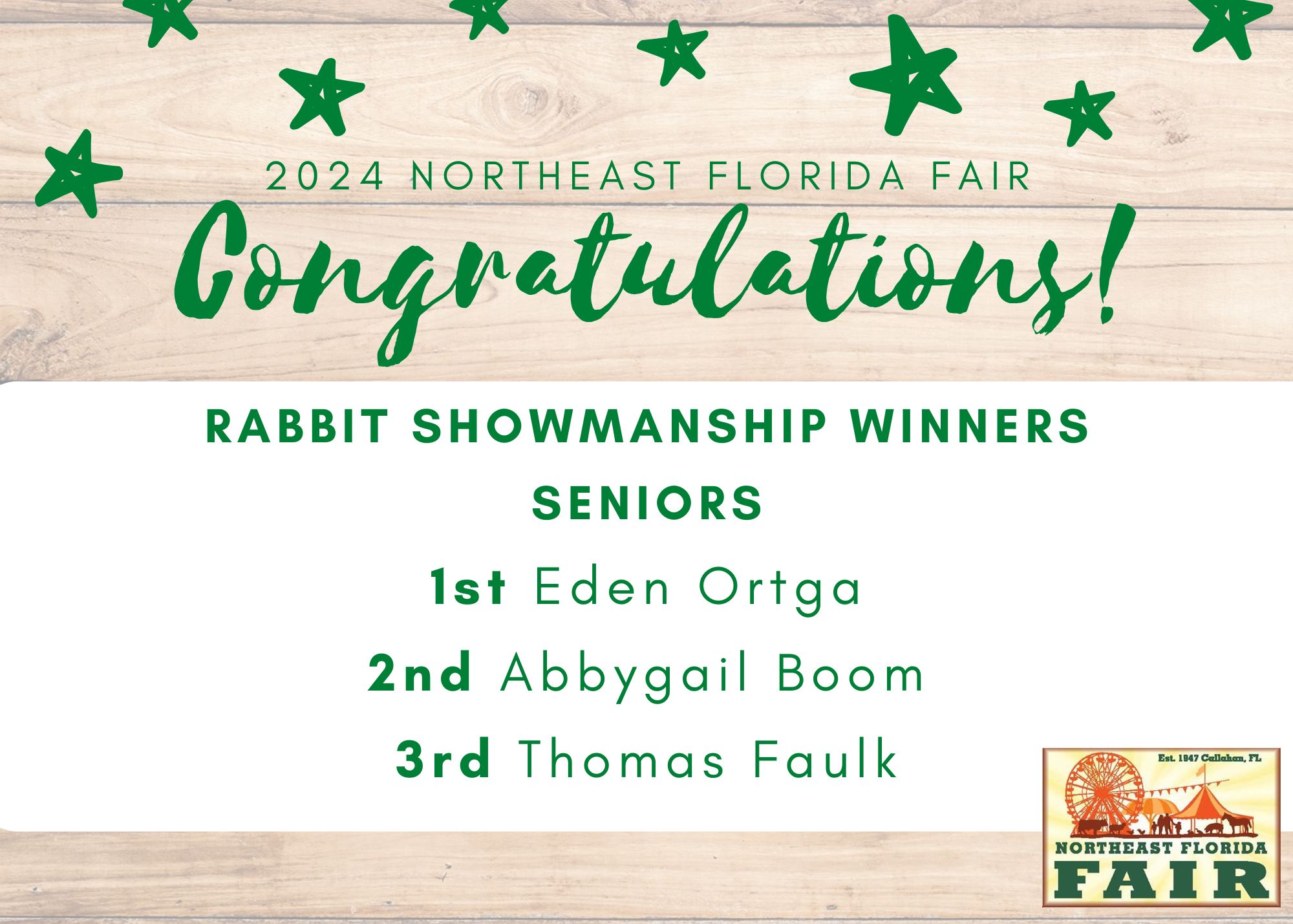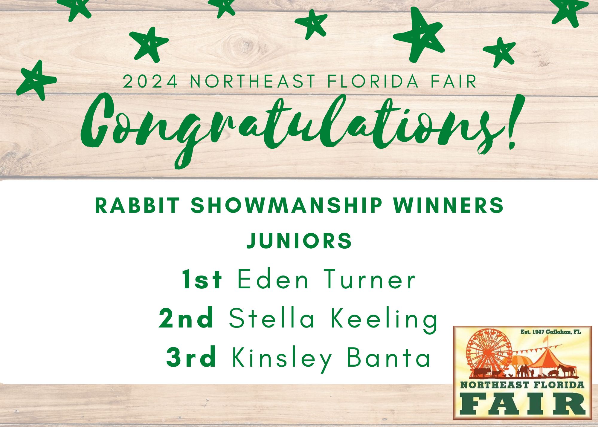 Congratulations to all of competitors, exhibitors, volunteers, and friends who participated in the 2024 Northeast Florida Fair!