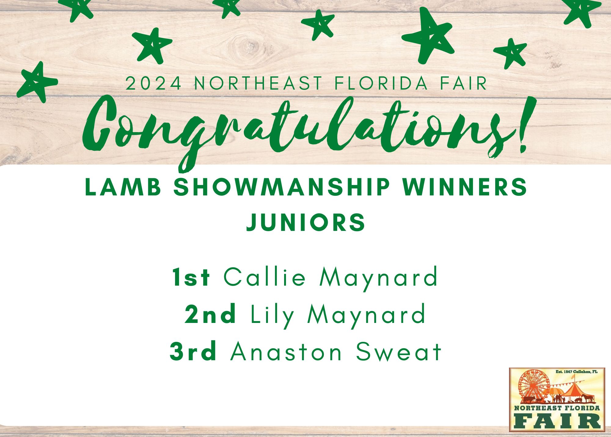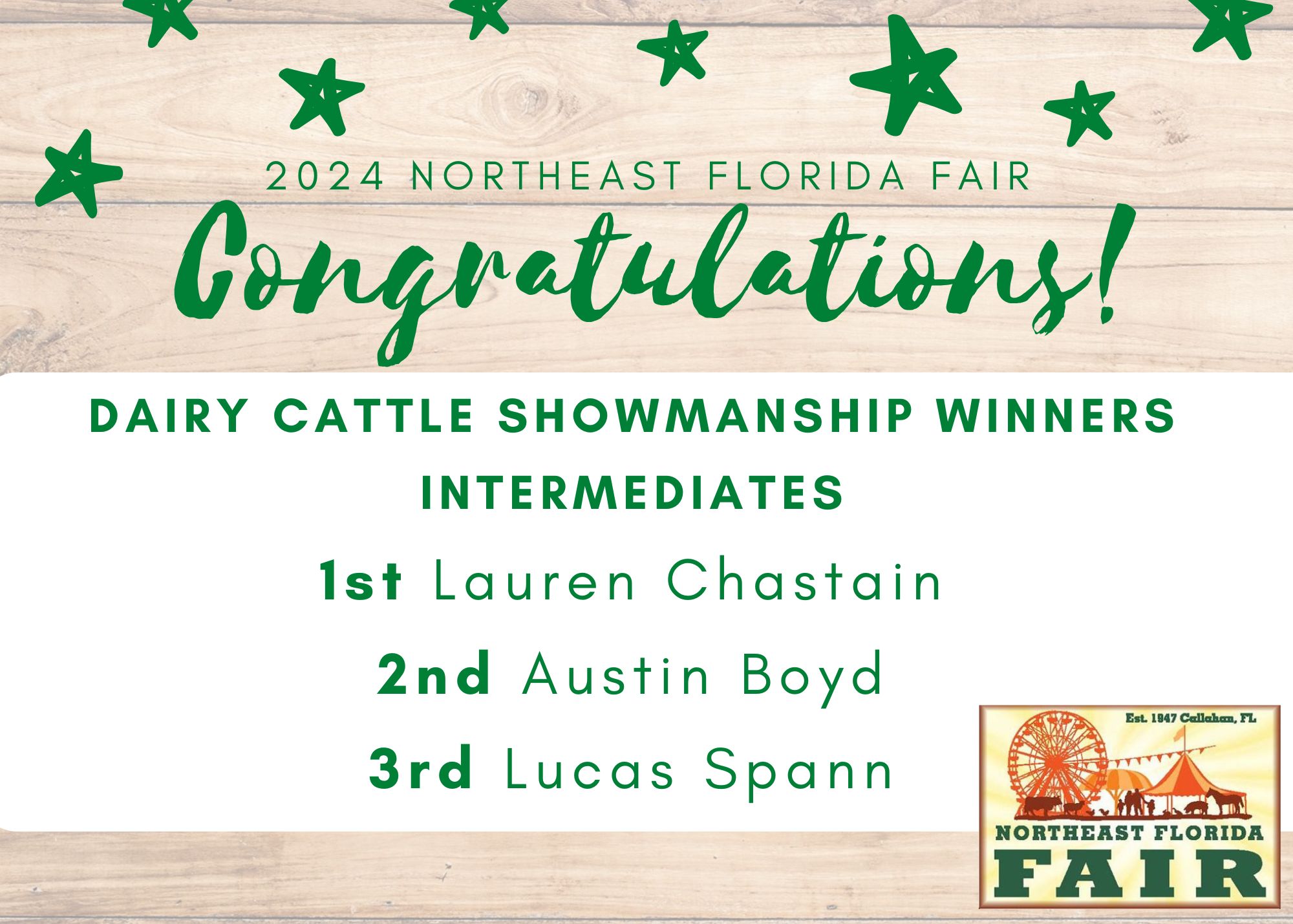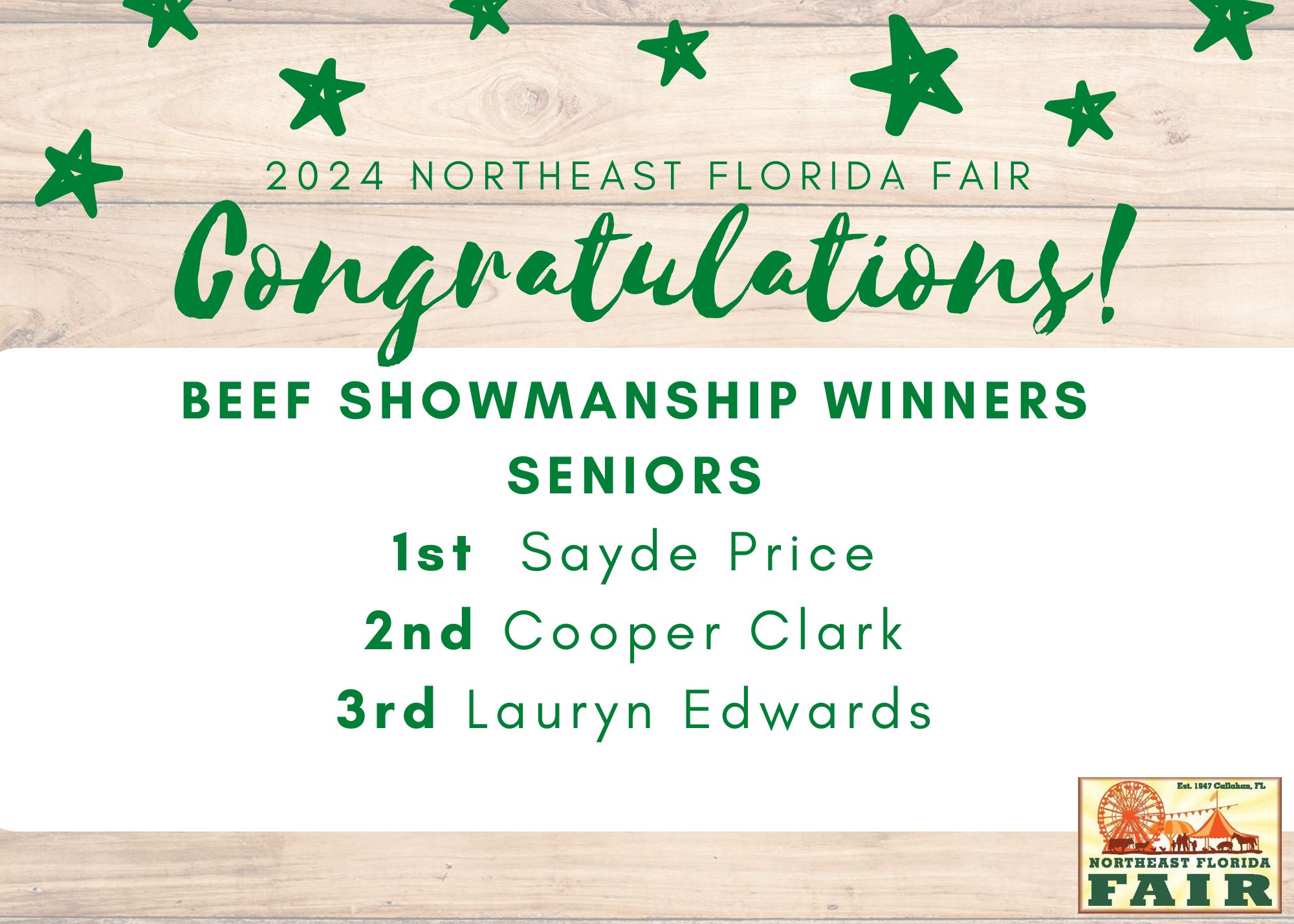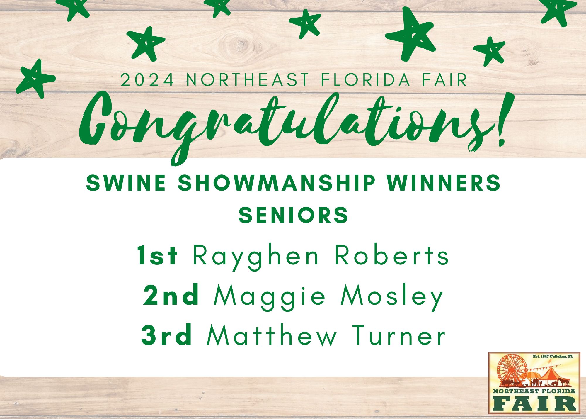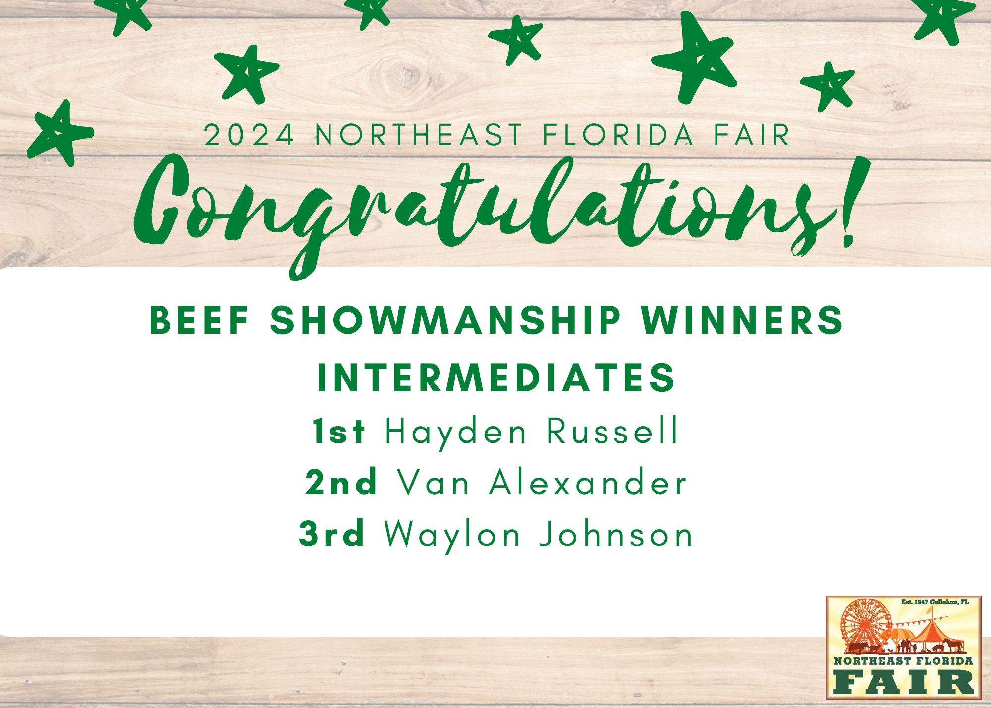 Congratulations to all of competitors, exhibitors, volunteers, and friends who participated in the 2024 Northeast Florida Fair!