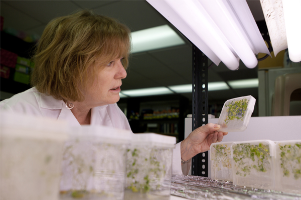 Rosemary Loria arrived at UF in 2011 as the chair of the plant pathology department. Loria’s career has been characterized by a fascination with what makes plants sick and how they fight back. She has made distinguished contributions to the study of the molecular basis of bacterial diseases of plants, particularly regarding genetics and biochemistry of Streptomyces bacteria, which cause an economically important disease in potatoes known as “scab.” Loria’s work not only identified the genes that confer pathogenicity (the ability to cause disease), but also showed that a phenomenon called horizontal gene transfer spread pathogenicity genes among Streptomyces species.