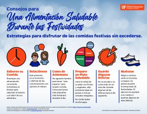 Mantener hábitos alimentarios saludables durante las festividades de fin de año, cuando la comida es parte de la celebración, puede parecer un desafío al que se le agregan sentimientos de culpabilidad especialmente cuando a esta situación se le suma el estrés de los preparativos del viaje. Si considera que es imposible tener un plan de alimentación saludable tangible durante las festividades, los expertos de University of Florida- Institute of Food and Agricultural Sciences (UF/IFAS) le ofrecen algunos consejos para hacerlo realidad.