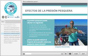 La tercera lección ofrece una introducción al manejo de las pesquerías. En esta sección, los asistentes aprenden sobre la importancia del manejo pesquero, quién tiene a cargo la gestión de las pesquerías en nuestro estado y los fundamentos que guían las decisiones de manejo. Aunque muchos pescadores están familiarizados con las regulaciones de pesca, es posible que no entiendan a plenitud las razones detrás de su implementación. Este módulo también incluye información sobre las agencias encargadas del manejo, las herramientas científicas utilizadas en la pesca, qué implica una evaluación de poblaciones, los modelos poblacionales, los datos pesqueros y cómo los pescadores pueden contribuir a la ciencia.