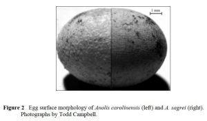 If the Cuban brown anole and Carolina green anole are placed side by side, the one with the shorter snout is the brown anole. Throughout the warm months, female anoles lay single, round eggs in moist soil or rotten wood at roughly 14 day intervals. The eggs of brown anoles have longitudinal grooves, whereas green anoles have raised bumps. Once identified, control measures can be taken. Brown anole eggs can be destroyed by freezing or boiling. Adult brown anoles can be located and captured by performing night time hunts with lights. Being diurnal, cold blooded creatures, Cuban anoles tend to congregate together under shrubs and along structures. Once collected the invasive Cuban brown anoles can be humanly euthanized by rubbing lidocaine on their skin and placing them in the freezer.