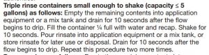 Storage and disposal will tell you what temperature ranges you might need to store it in, what NOT to store it with, and any other special considerations that might impact safety. There will also be instructions on how to clean out the container, which might differ depending on the size of your container and if it is refillable or not. Labels will give clear instructions on how to clean out, simply saying triple rinse isn’t enough. To properly perform a triple rinse requires reading and following the instructions ON the label.