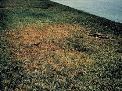Yellow and light green patches of St. Augustine lawn that eventually thin and die are the symptoms our walk-in customers described. Roots show the symptoms before the leaves do. By the time the leaves turn yellow, the disease has been destroying the roots for weeks or even months.