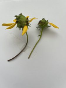 So, I tried Googling “strange bud formation on wildflowers in Florida” and various other combinations. Nothing. I only had a vague understanding of galls; they mostly affect oak trees and I have none, so I’ve never bothered to learn about them. But at some point, it had occurred to me that these weird growths could be something like galls. Before I had a chance for further Googling, I was on the UF/IFAS Pinellas County YouTube page for a completely unrelated reason and stumbled upon a video titled “Exploring the Biology, Chemistry and History of Insect Galls.” This is a very interesting presentation from July 2021 by Christine Leonard who wrote her thesis on galls and is clearly very excited about them. It’s mostly about oak tree galls but, forty-eight minutes in, while responding to a question about a photo she says something like “that is swollen tissue on a flower bud of a Goldenrod caused by a midge gall.” Now we were getting somewhere. Ms. Leonard concludes her presentation saying that galls don’t harm the oak trees and help the insects that make them, so we should not be worried about them. Historically, humans have even used galls for their own purposes (she presents a recipe to make ink!). All good, right?