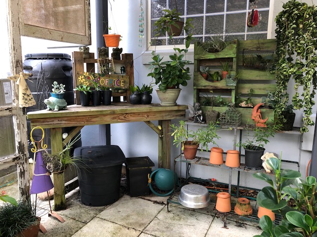 * Personalize your potting bench area with wind chimes, fairies or gnomes, art, signs or other fun “stuff”!