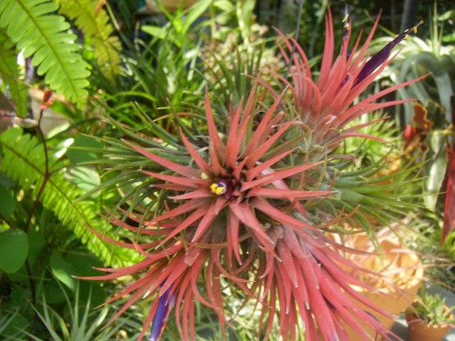 Bromeliads come in many shapes and sizes and can be grown in the ground or in a planter. These bromeliads feature red foliage.