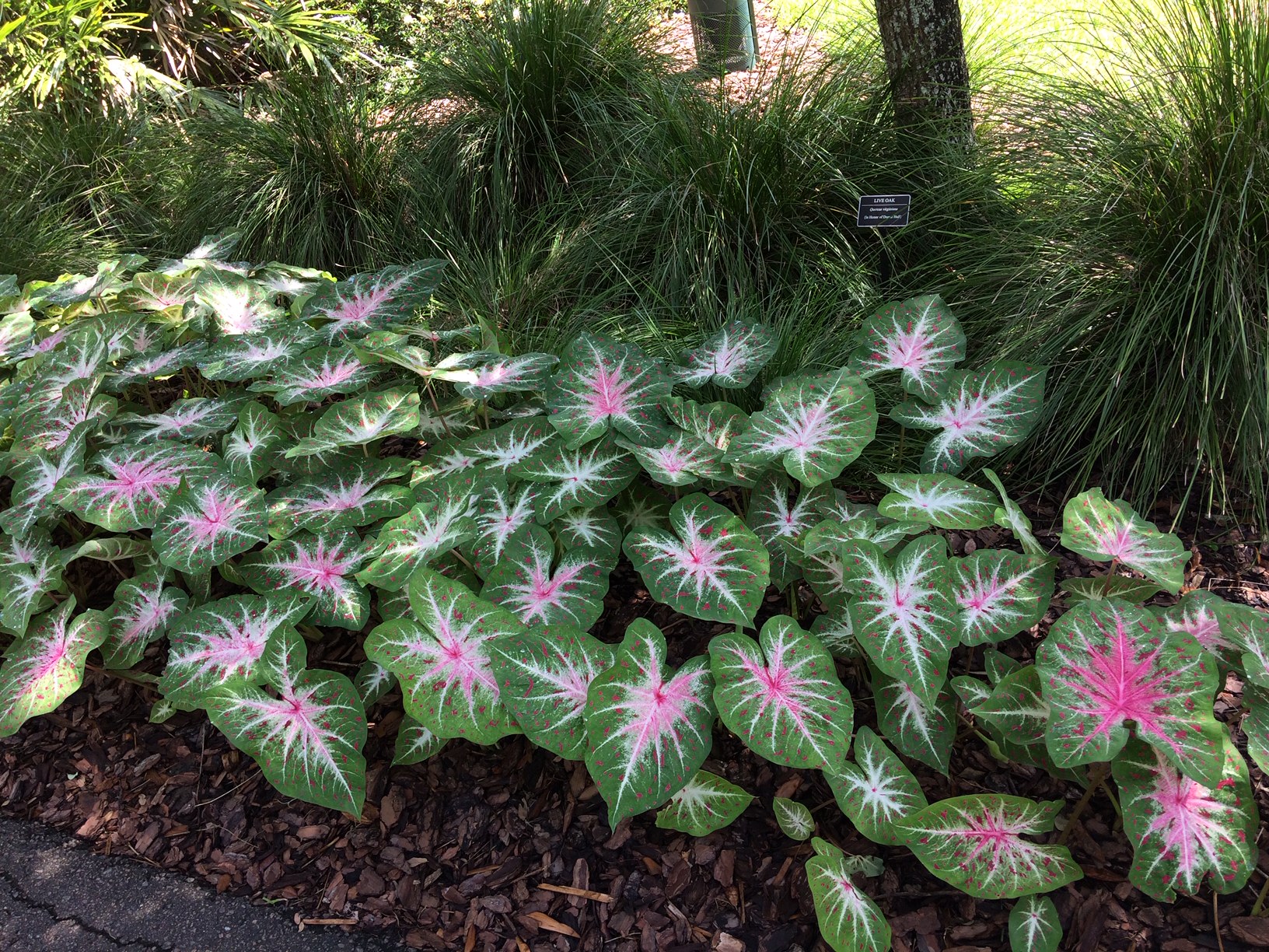 Caladiums do well potted or planted in the landscape. They will deliver a pop of color in your shade garden and are nearly impossible not to notice.
