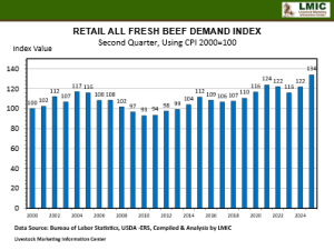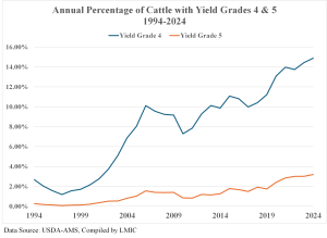 Another factor influencing high cull cow prices is that with longer feeding days, we are seeing more carcasses with yield grades 4 and 5. Fat trimmings (50s) form steers and heifers are combined with lean trimmings (90s) from cull cows to create ground beef products. With more fat trim and less lean trim being produced and continued strong demand, prices for cull cows are expected to remain more than favorable.