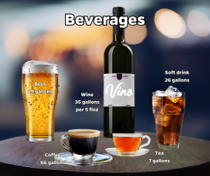 Though the goal is to conserve water in the home, we can be conscious of the water used in the production of our favorite foods and beverages, even if the local footprint doesn’t have a direct impact on the water resources in our region. When vegetables grown in a water-stressed region are exported to a water-rich region, the water-stressed region is effectively exporting a scarce resource embodied in the food being exported.