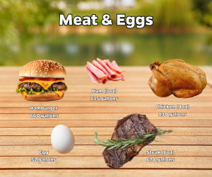 A meat-based diet of 3,400 calories per day consumes between 950-1,320 gallons daily. For reference, this is enough to fill a bathtub – 15 times!