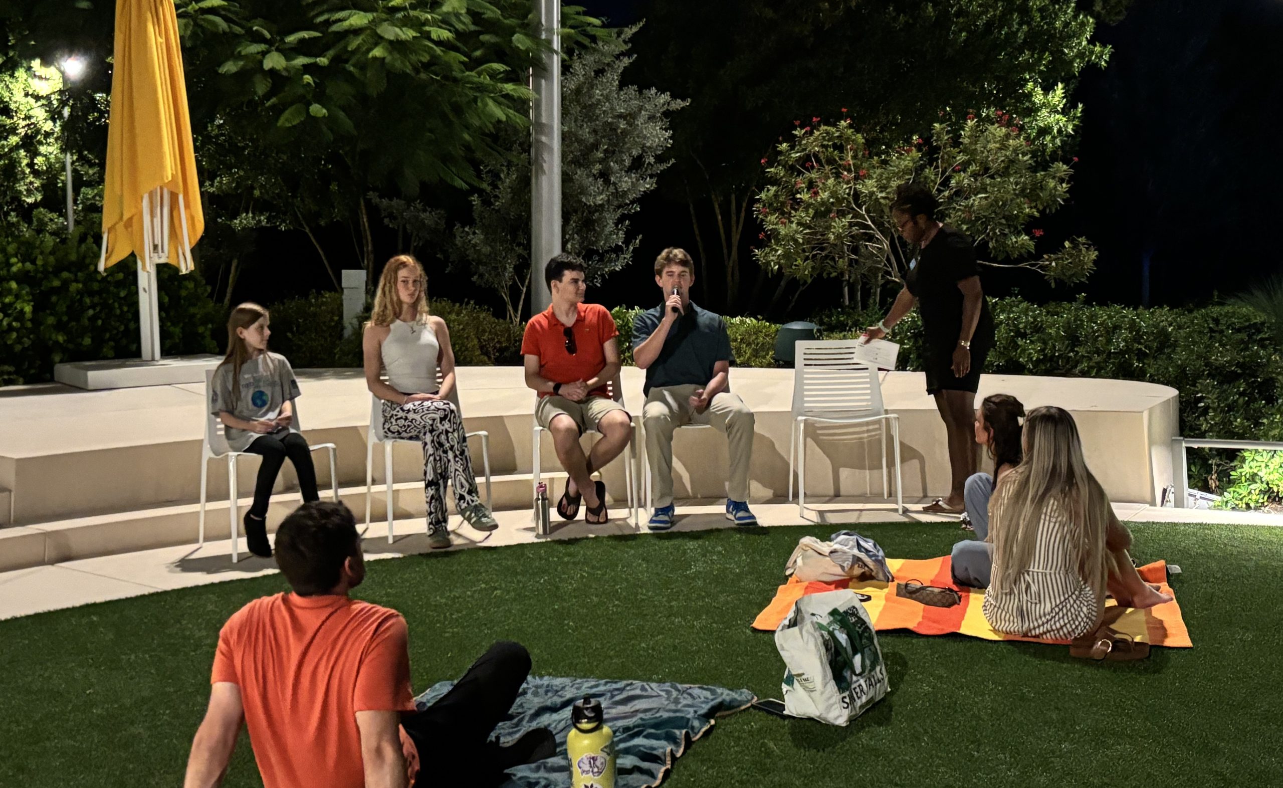 Following the film screening at The Bay, our local youth panelists responded to the film’s themes, shared their own experiences in Florida’s environment, and brainstormed actions the community can take to make a difference, speaking to over 80 community members in attendance. The panel included Andromeda Rhea (4H 4-paws club member), Brice Claypoole (Kids for Clean Water, The Kid Who Cares), Mackenzie Valenza (Riverview Marine Science Club), and Jake Grandusky (Riverview Marine Science Club). Zahir Ringgold-Cordes, UF IFAS Extension Environmental Education and Outreach Program Assistant, moderated the panel discussion.
