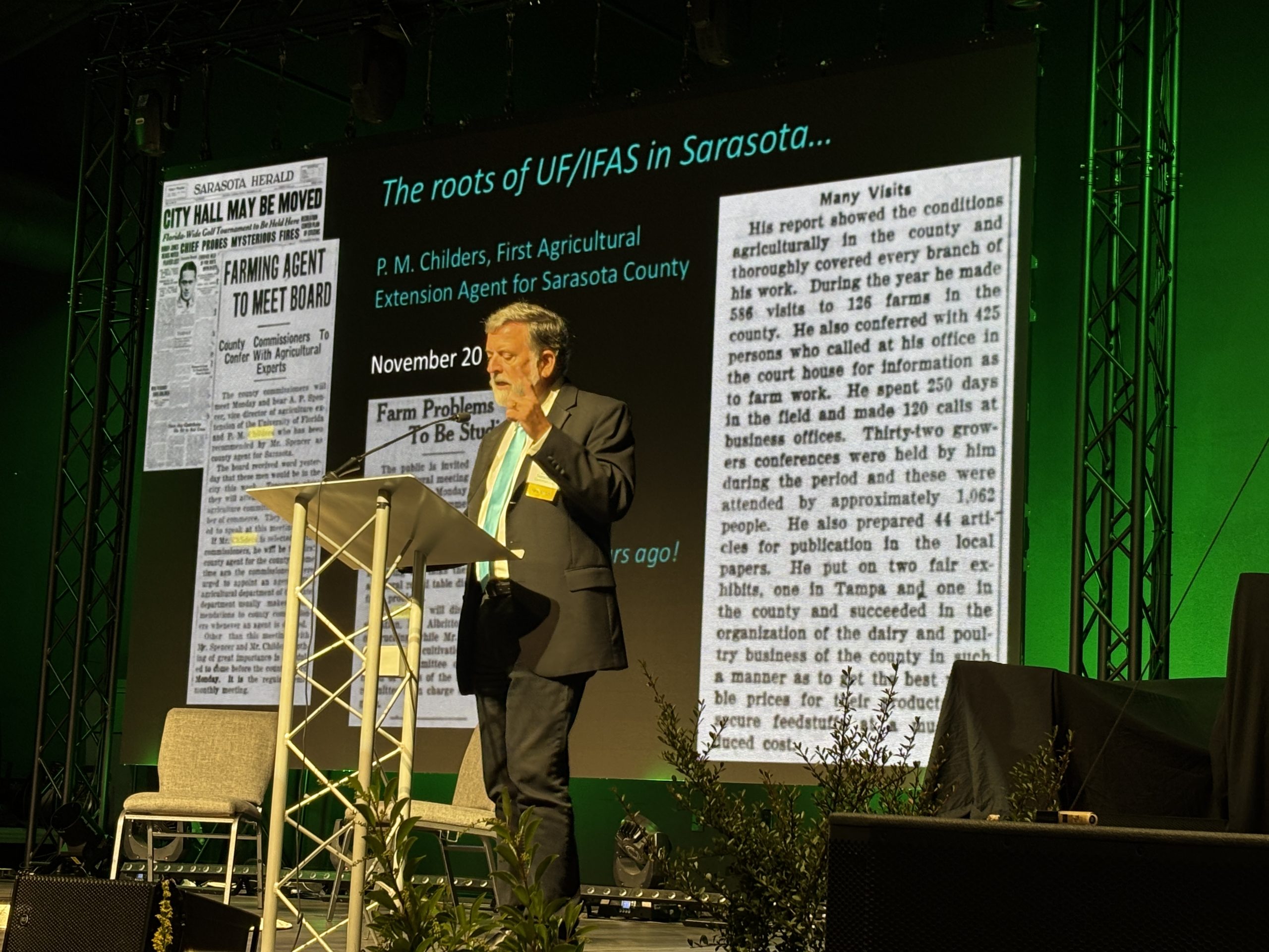 This year’s 20th anniversary workshop included honoring nine local “Sustainability Champions” for their commitment to advancing or promoting strategies that help build resilient communities and address current environmental challenges. The awards ceremony was led by Lee Hayes Byron, Director of Sarasota County UF/IFAS Extension and Sustainability, after the workshop. The ceremony and social event included food, drink, and live music from The Garbage-Men.
