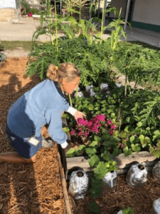 If it takes a village to raise a child, it can also be said that it takes a village to support a school garden. According to Marie, the garden has received receives lots of support from the community. Local businesses have donated garden soil, mulch, peat moss, vermiculite, seeds and other items. Local residents have been generous in their support of the garden, too, donating two wheelbarrows, garden tools, plants, pots, mulch, and other supplies.