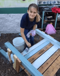 Over the years, the garden has grown to include a 60’ X 25’ area of beds which produce varied combinations of beans, eggplant, tomatoes, pineapple, lettuce, strawberries, zucchini, corn, cucumbers, peppers, herbs, and many other edible plants. Adjacent to the garden area, there’s a large pergola with benches that often serves as an outdoor classroom. English Estates also has an alternate space where there are several work and storage areas for potting, composting and transplanting.