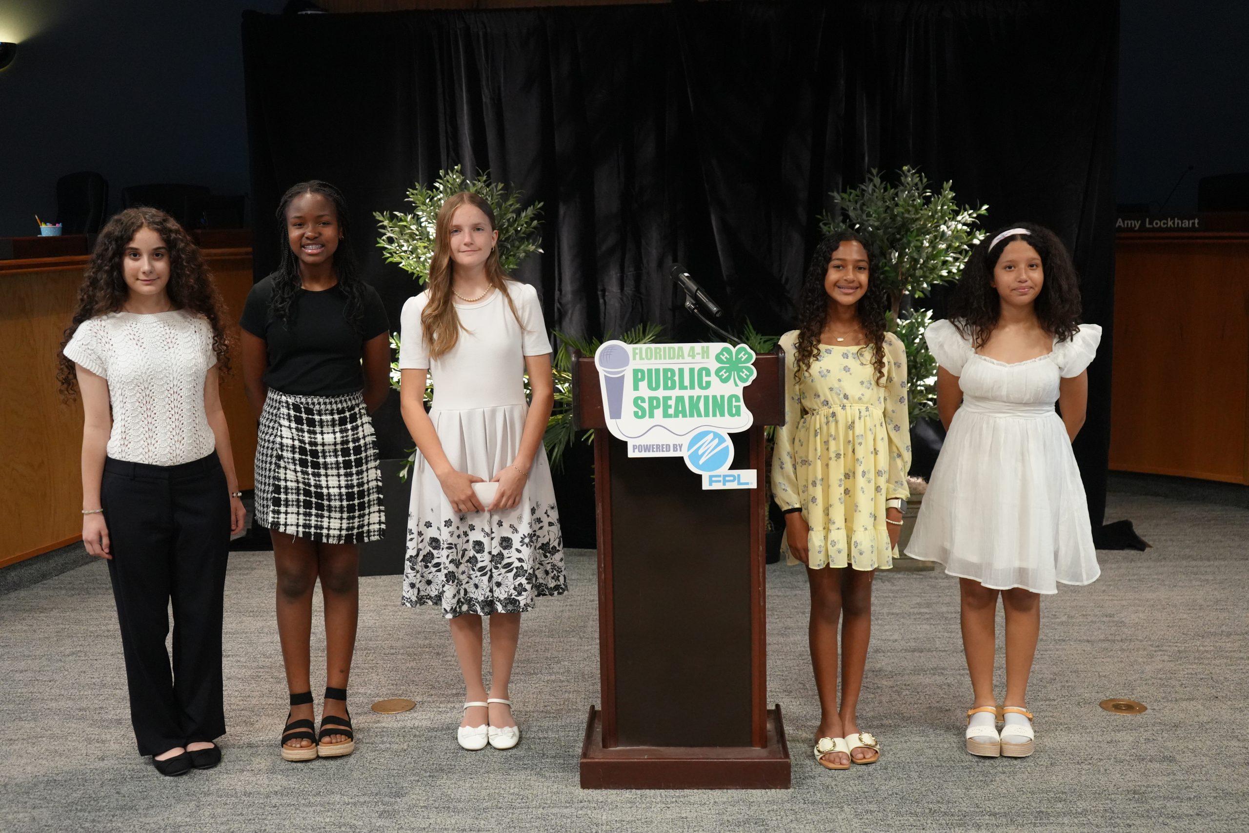 On May 5, 2025, the Seminole County Board of County Commissioners Chambers echoed with the confident voices of local sixth graders as they took center stage in the Florida 4-H Public Speaking Competition. Sponsored by Florida Power and Light (FPL), this countywide event celebrated the hard work and courage of young speakers from schools across Seminole County.