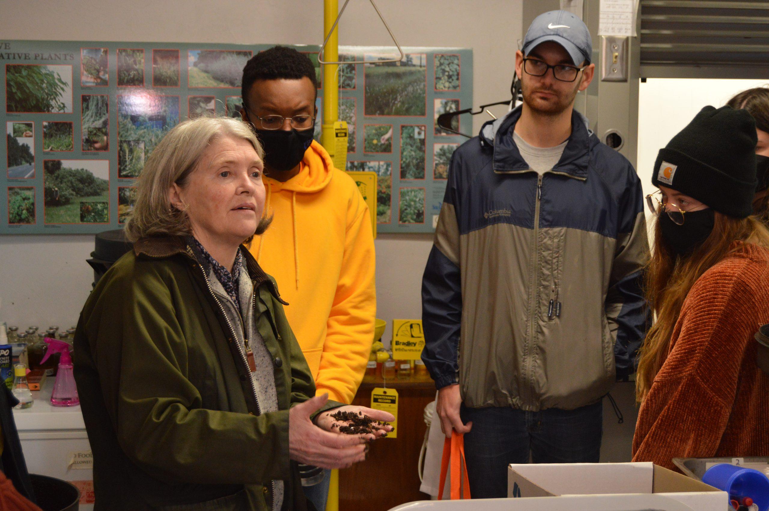 The SCC will train anyone who wants to learn about microbial composting, which turns organic waste into natural fertilizer. Students asked Wilkie about what can and cannot be put into a composter. She also explained the benefit of diverting food waste from landfills. Specifically, it reduces the liquids from food waste that turn into landfill leachate and lowers methane emissions on site.