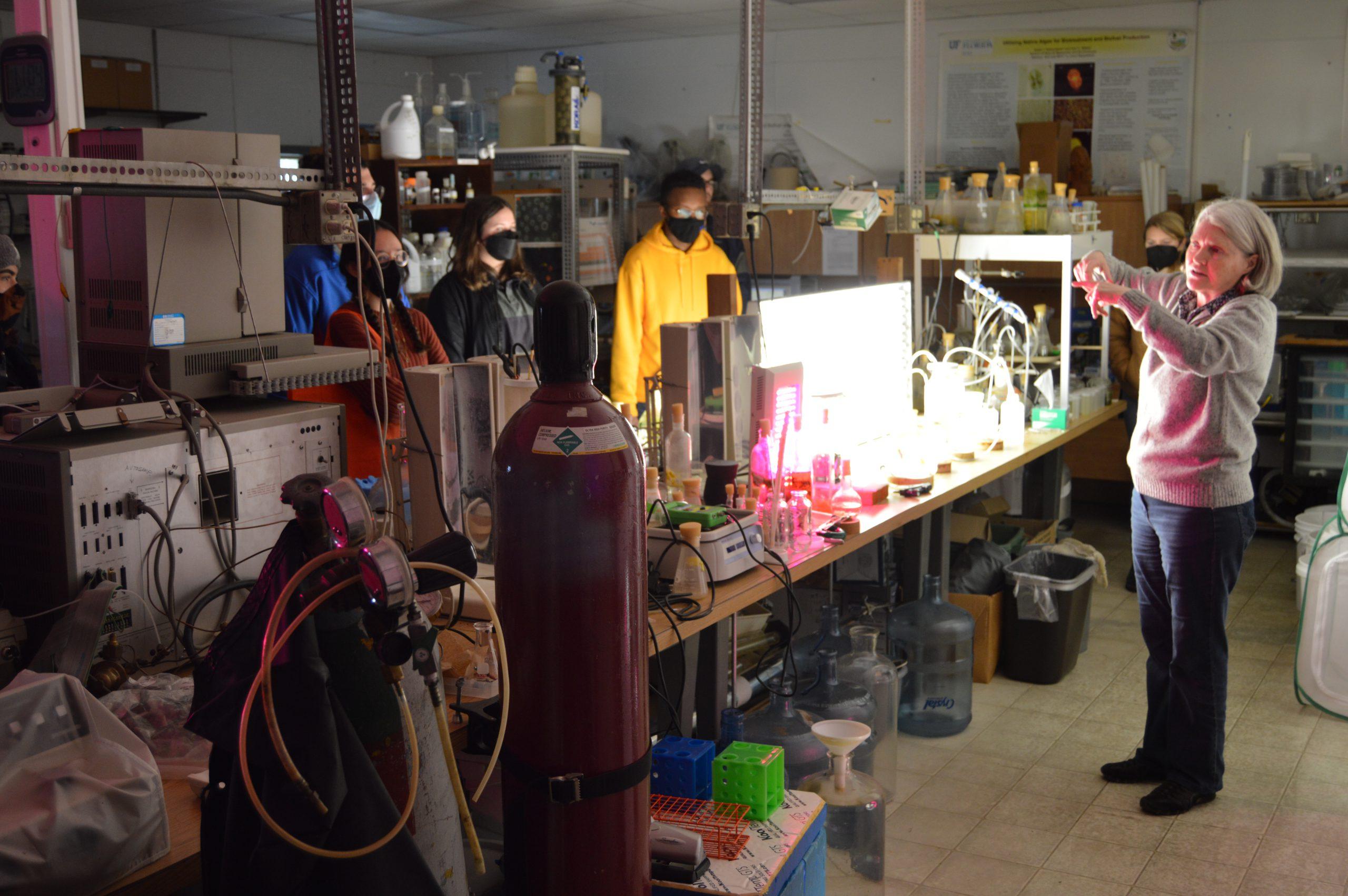 Wilkie highlighted her work on algal cultivation for the students, specifically comparing filamentous algae with microalgae. Research on the growth of algae has revealed their potential for carbon capture to reduce greenhouse gas emissions. They can also be converted into a bioenergy fuel source.