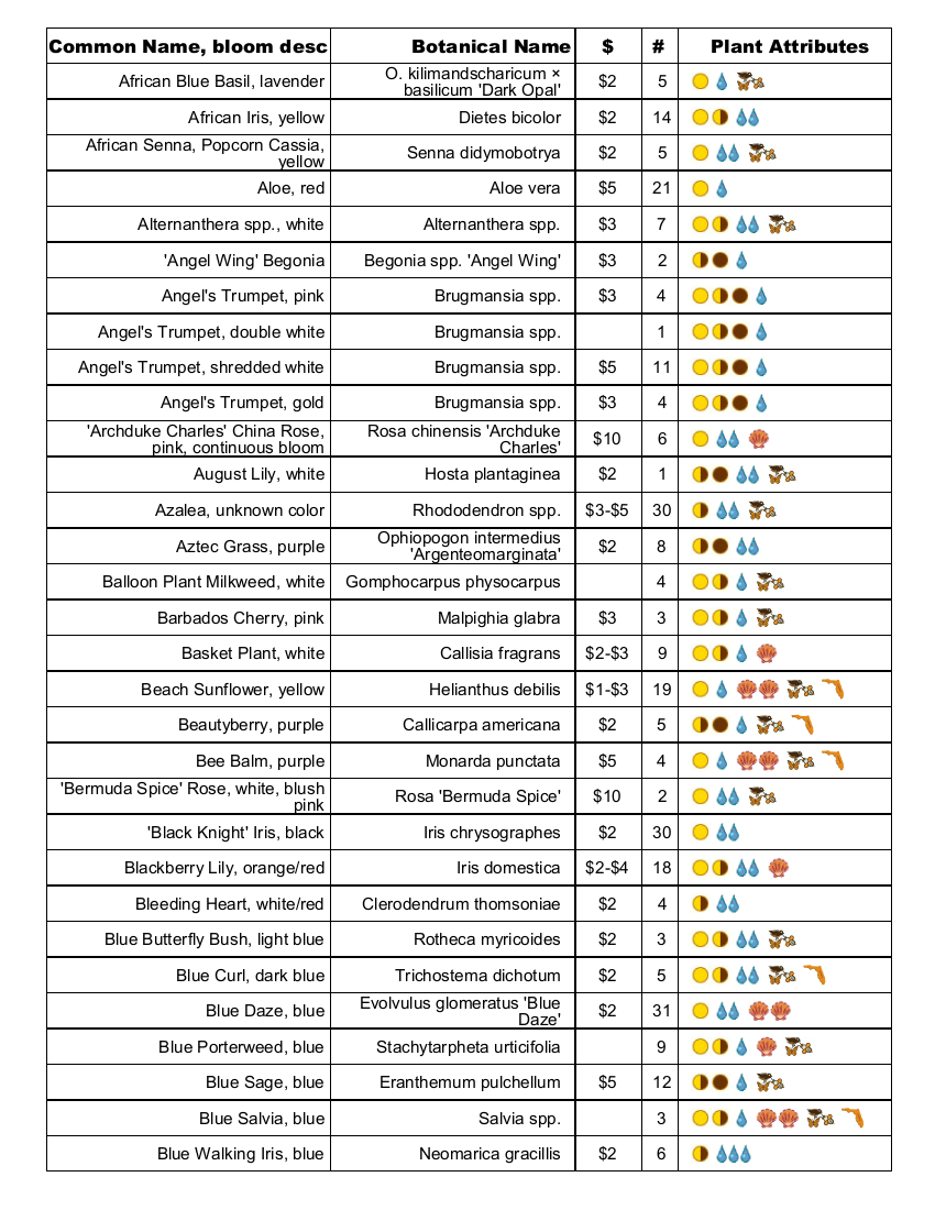 Download/Print Plant Sale Inventory with Prices – sorted by common name