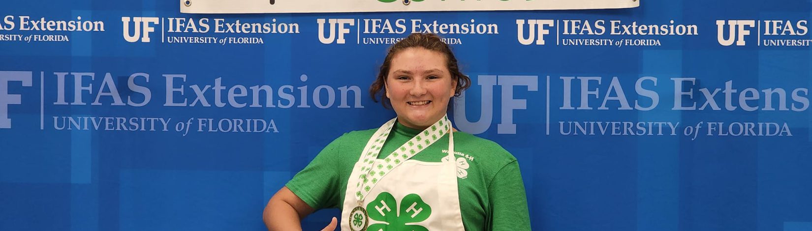 Teens who participate in 4-H also can test their acquired knowledge and skills through competition. Teen member Vanessa Elderkin opted to put her grilling skills to the test in the annual district tailgating competition. The purpose of this contest is to promote the use of animal protein in the diet by teaching the art and science of safely preparing beef, pork, poultry, and seafood in an outdoor setting. Investment in this activity provides 4-H youth with life skills, including decision making, healthy lifestyle choices, and communication. Elderkin entered her recipe for Huli Huli Chicken. On Saturday, July 30, she traveled to Chipley, located in Washington County, to compete in the NW District 4-H Tailgating Competition. Elderkin, a first-time contestant as well as the first Wakulla youth to ever participate in this competition, placed first in the chicken category against nine other competitors. She will represent the NW 4-H District at the state competition in Gainesville on October 1.