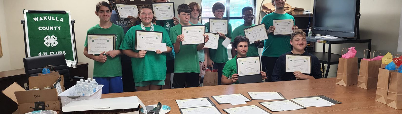 A group of 4-H teens also completed the 2nd annual Teen Leadership CERT Camp week in partnership with the Wakulla County Sheriff Office Emergency Management staff. Teens from year one served as mentor leaders for the week and led groups of this year’s teen leadership cohort. Youth who complete the five-day camp can participate in additional Community Emergency Response Training during the year and provide support to Emergency Management staff through community service throughout the year. The 2022 mentor leaders were Vanessa Elderkin, Alex Barlow, Carter Christensen, Rylee Morrison, and Carson McCullen. The 2022 Teen Leadership CERT graduates were Lauretta Compton, Matthew Porter, Sean Masters Junior, Caden Gruebel, Anuj Patel, Alex Porter, Emma Riggs, John Alex Edwards, Wyatt Folsom, Malcolm Durant, Jason Grimes, and Cayle Rogers.