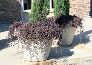 If interesting architecture is what you require in a plant, ‘Purple Pixie’ must be on display in your yard. This dwarf cultivar of the wildly overused purple shrub Loropetalum chinense has taken the horticultural world by storm. The unique combination of true purplish foliage that only greens slightly in the hottest summer sun, ribbon-like pink spring flowers, and a graceful weeping habit make ‘Purple Pixie’ a winner. Give this plant a medium sized container (at least 12” in diameter), water when the soil begins to dry, fertilize infrequently with a slow-release formulation, site in full sun to partial shade, and enjoy for many seasons to come.