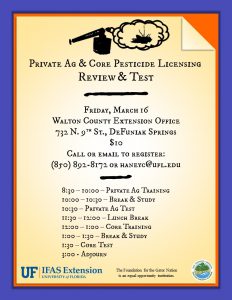 Do you need a pesticide license? Join us on Firday, March 16 for a review of the Private Ag and Core pesticide applicator information, followed by a chance to take the tests for each category.