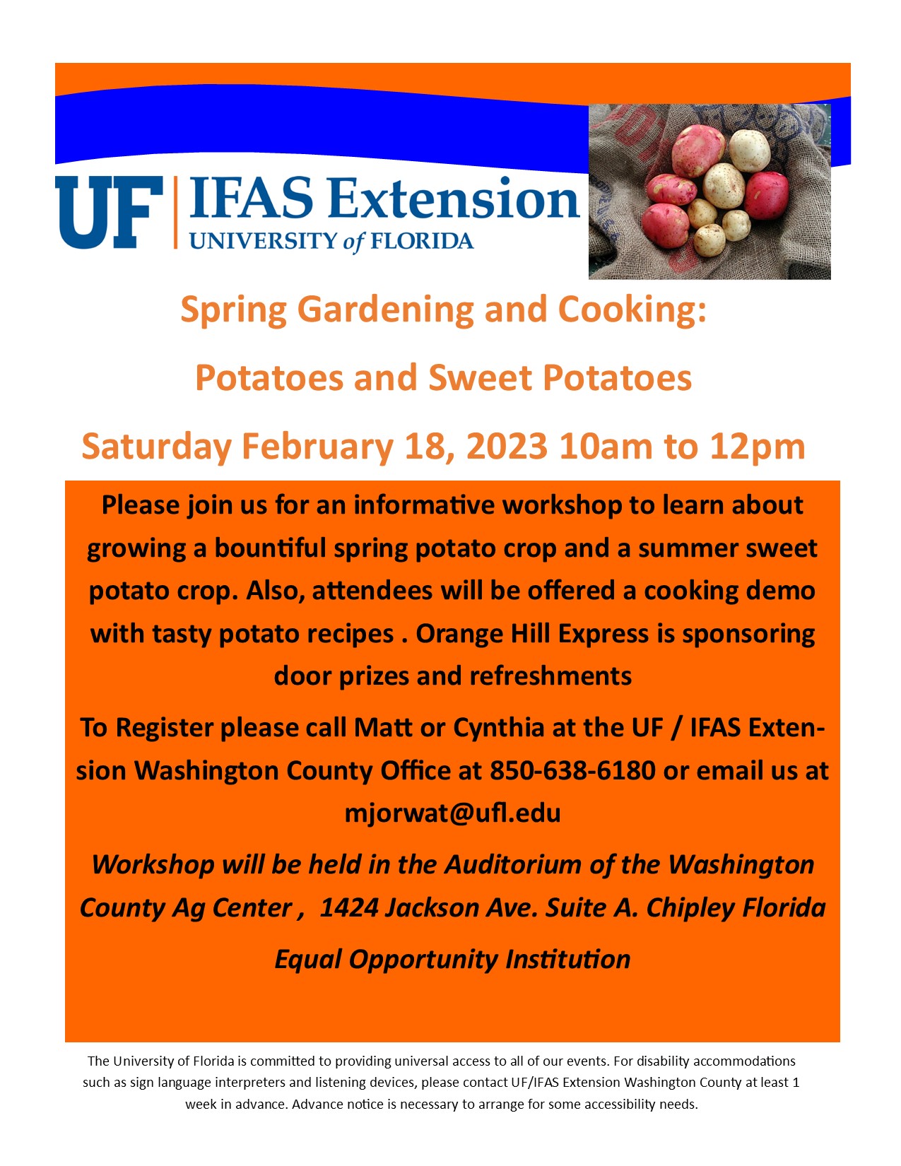 To Register please call Matt or Cynthia at the UF / IFAS Extension Washington County Office at 850-638-6180 or email us at